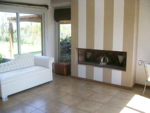 Amplio living comedor con hogar