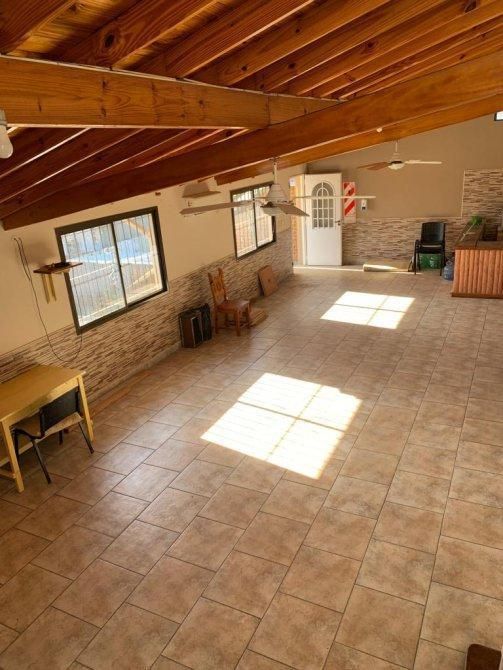 Amplio Salón con entrada independiente desde el frente que mide 8.40m x 29m con 2 baños. Su estructura se compone de techos de losa (apto para construir en altura), columnas de hormigón armado, paredes de 30cm, pisos de mosaico, y 5.50m de altura. Posee entrepiso de 4.60m x 8.40m.